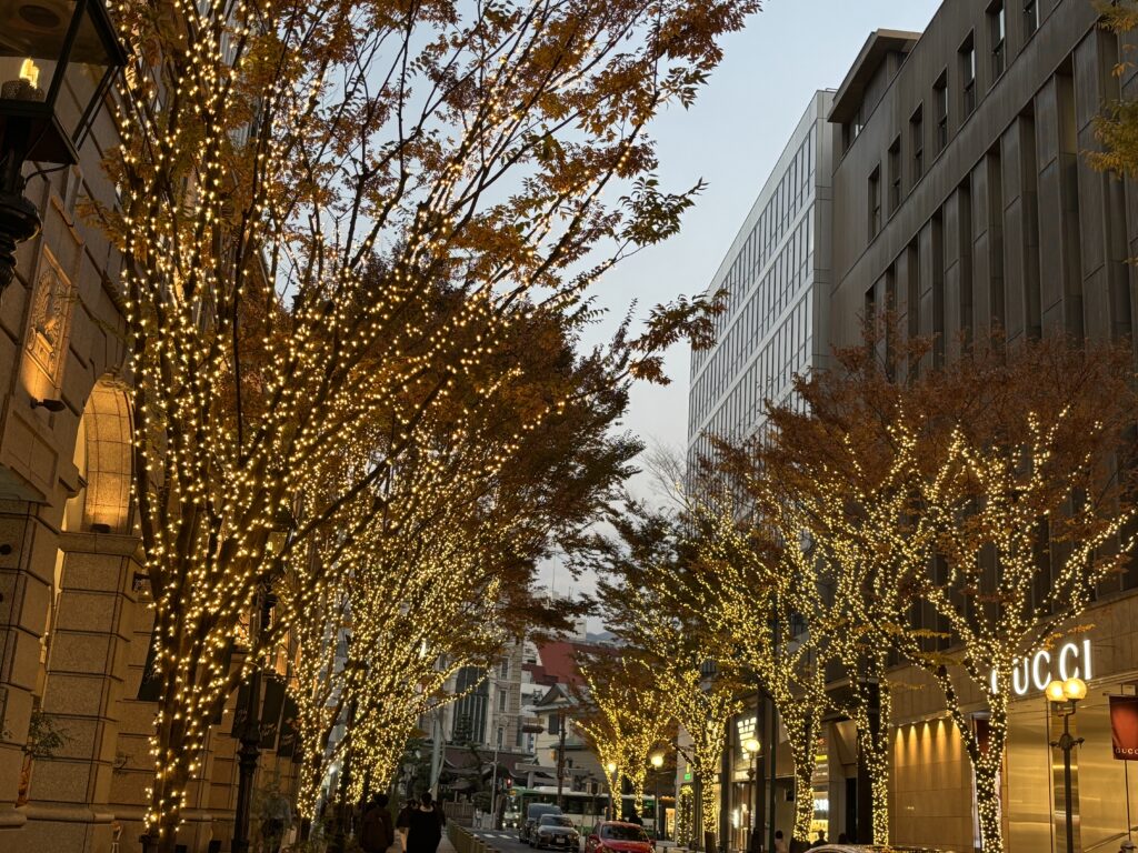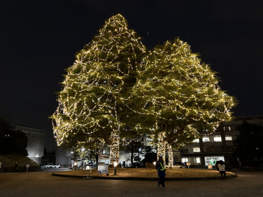 そこから徒歩圏内の神戸大学のツリーが、本当に見事でした。