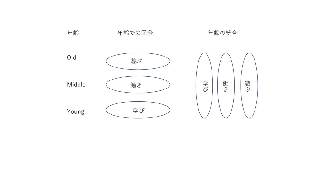 学び、働き、遊ぶ「年齢の統合」という考え方が有効だとも(図 参照)。