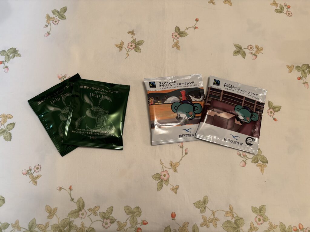「神戸学院大学経営学部 フェアスマイル」ブースには、珍しい大学オリジナルフェアトレードコーヒーが。