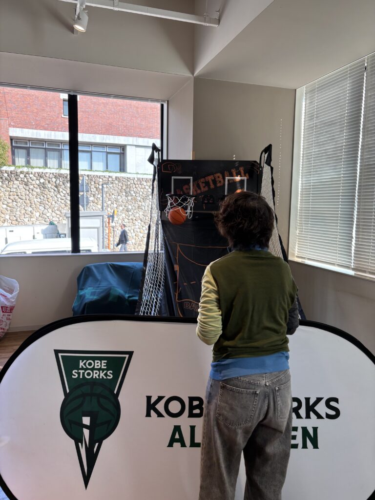 で、この「だれでもシュートチャレンジby神戸ストークス」ブースで、シュートゲームにチャレンジすると、
